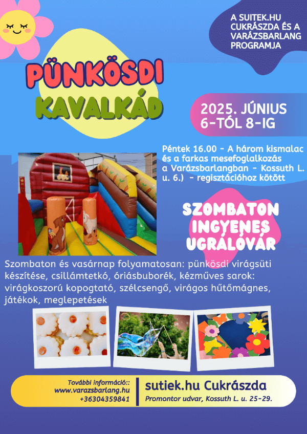 Ha igazán izgalmas programra vágytok, vagy még nem tudjátok, merre vegyétek az irányt pünkösdkor, van egy szuper családi ajánlatunk: vár a Pünkösdi kavalkád, a sutiek.hu Cukrászda és a Varázsbarlang közös rendezvénye, ahol garantált a jókedv!